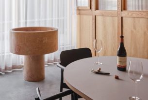 Konieczny sought to honour the building’s post-war character when creating the interior, layering it with “warmer tones” and eclectic materials to add a contemporary touch.