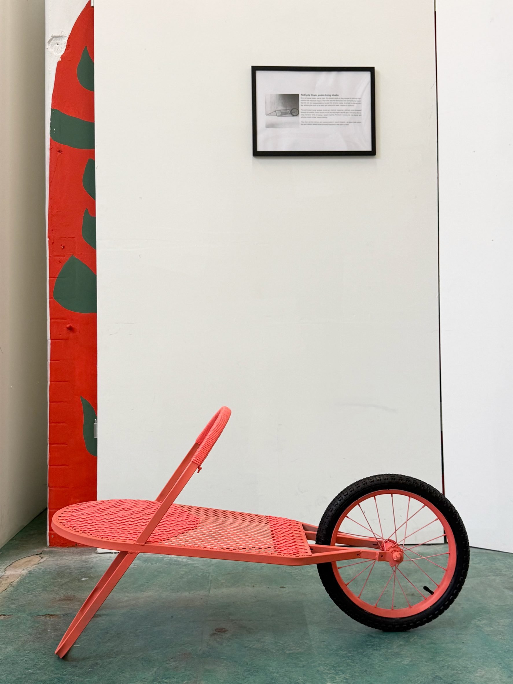 The exhibition also includes works from architect Andre Kong, who turned a bike trailer into a wheeled seat, and Studio Tip, which imbued a film prop chair with BDSM flair.
