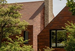 According to the studio, this distinctive curved exterior draws on inverted catenary arches seen in the works of engineer Frei Otto and architect Antoni Gaudi.