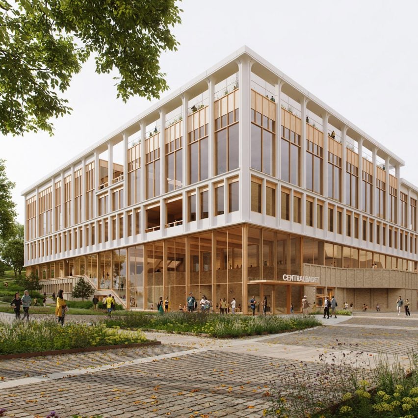 Henning Larsen designs timber Centralbadet swimming pool for Gothenburg